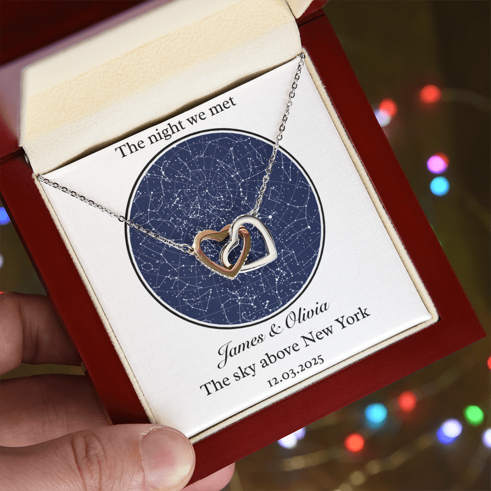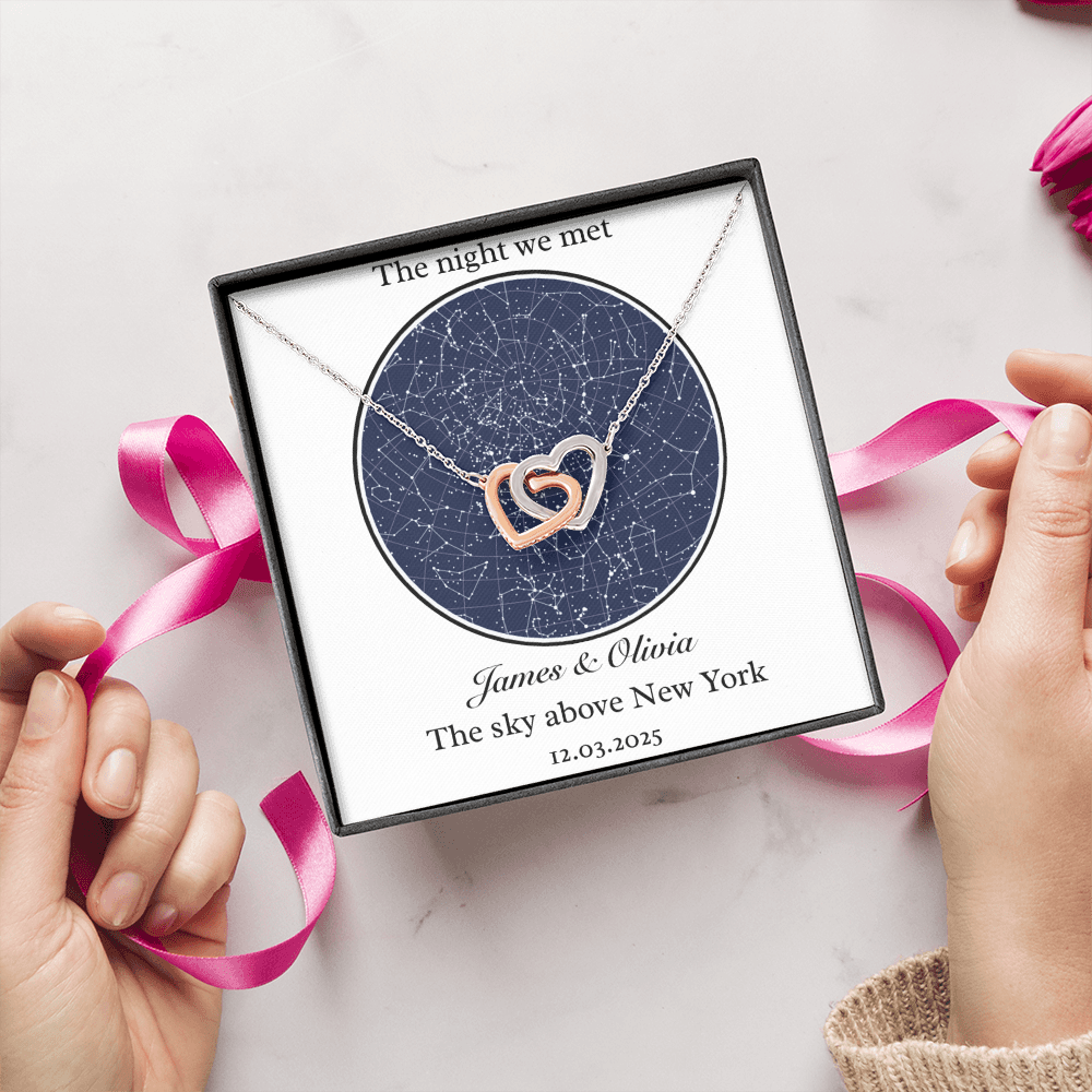 Some moments change everything — and the stars remember them. This necklace comes with a custom star map card, capturing the exact night sky from a moment your heart will never forget.